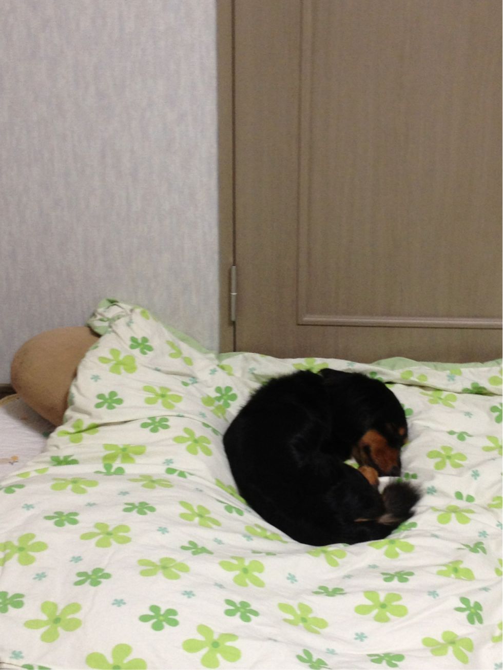 茶色いのがちょこんと見えてるのはわたしのだきまくらごまちゃんです。