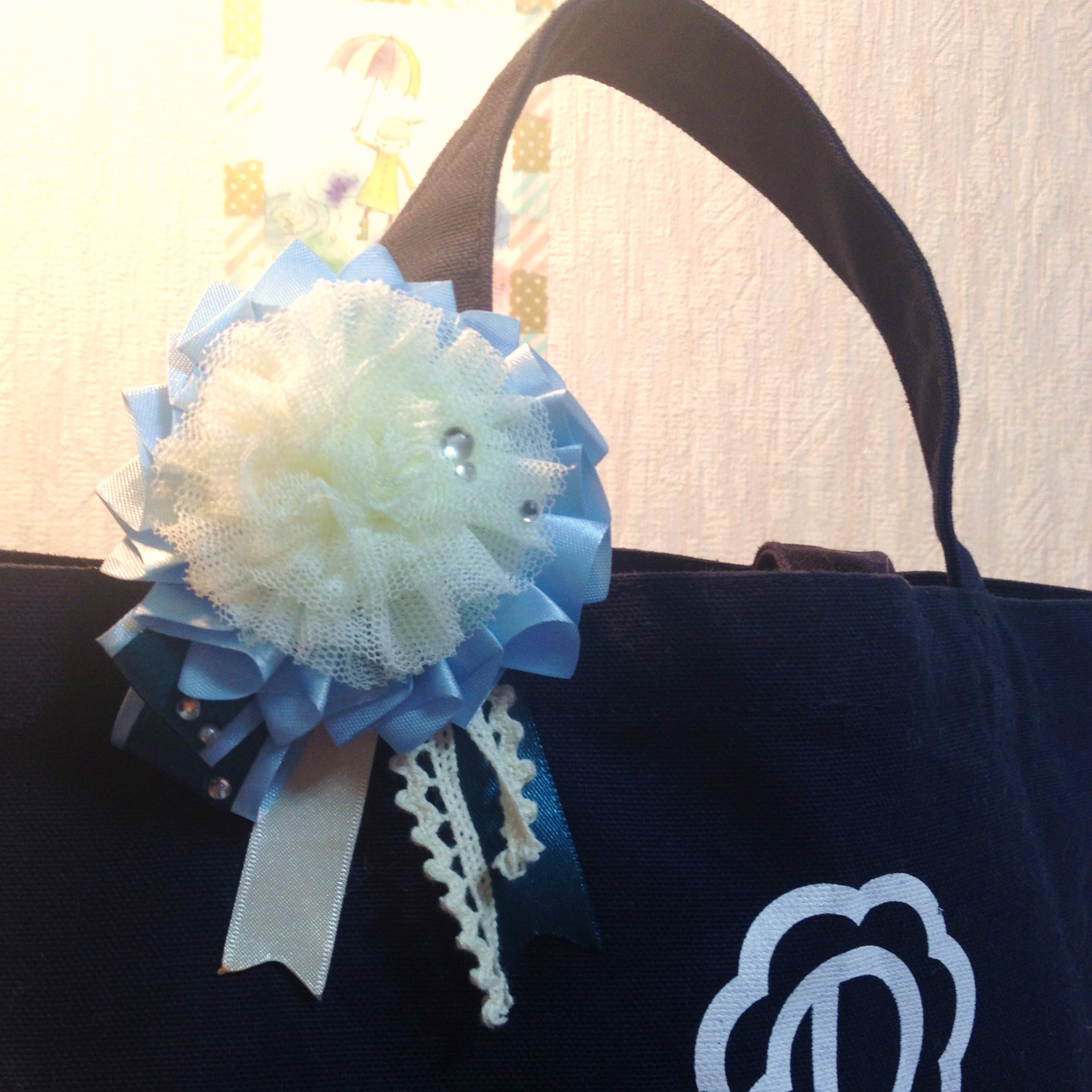 お菓子についてきたラッピング用のリボンだったり、使いかけの生成りのレースだったりで作ったのですがなかなかに自分好みでほくほくしてます。